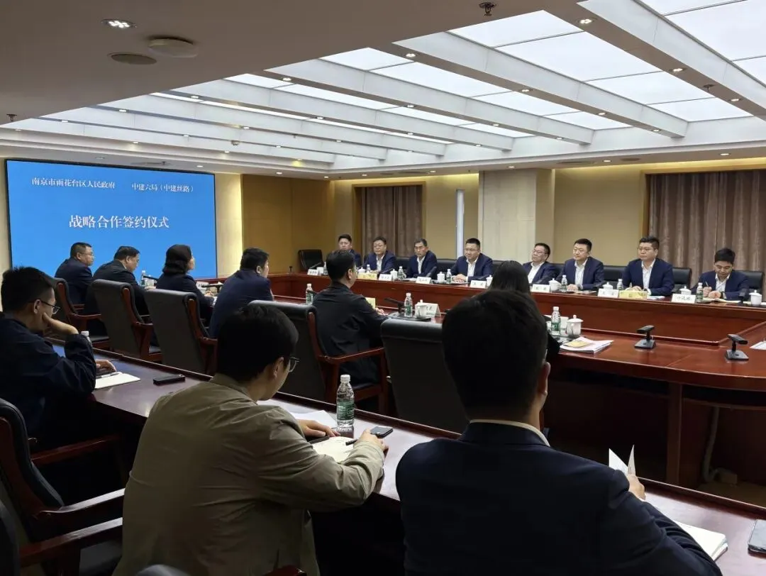 雨花台区有关部门、街道和企业负责人;中建六局(中建丝路)有关总部部门及子企业负责人参会。