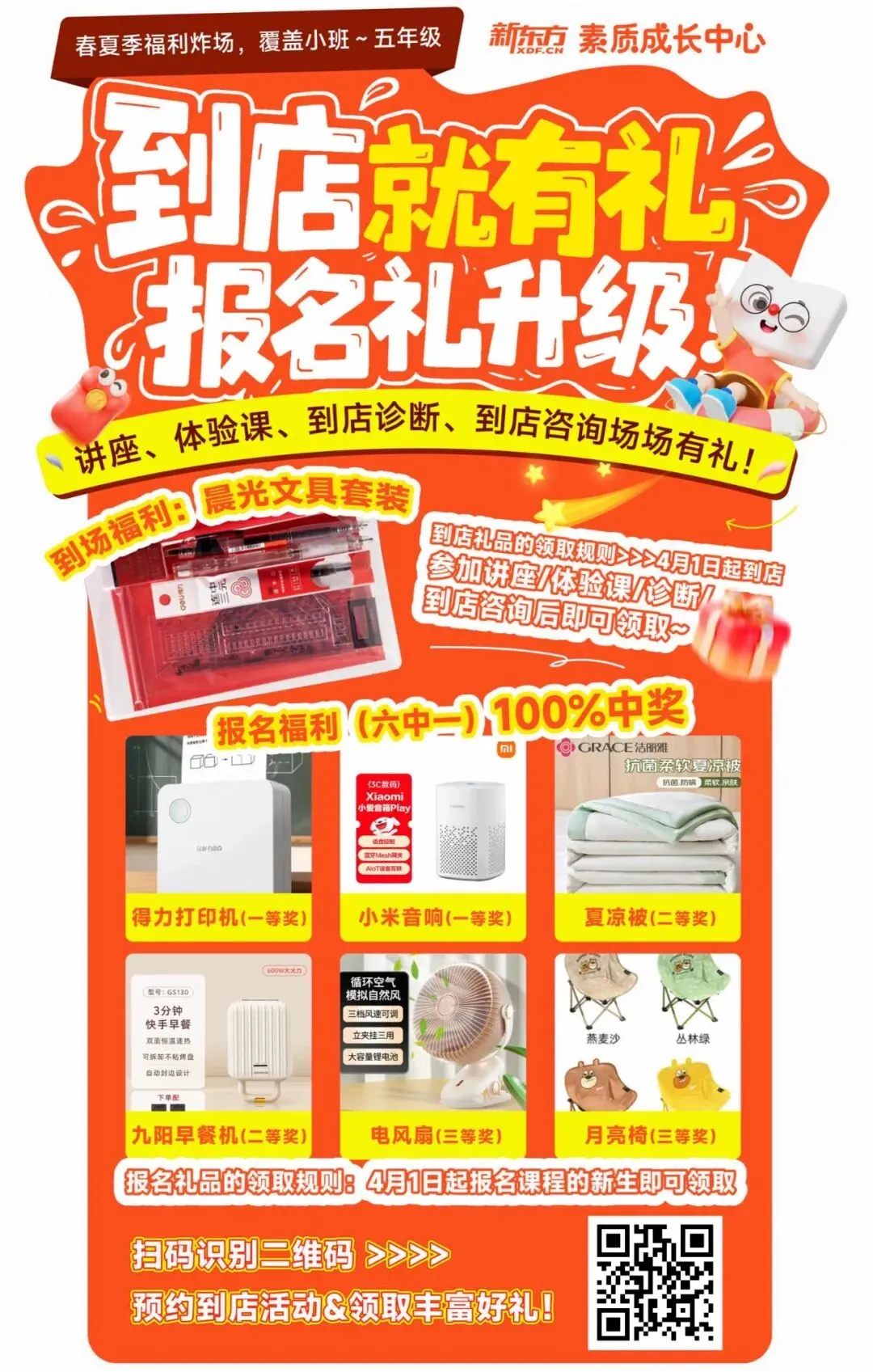南京新东方素质成长中心30家校区同步开启到店就有礼活动,扫码预约线下体验课,到店体验即可领取