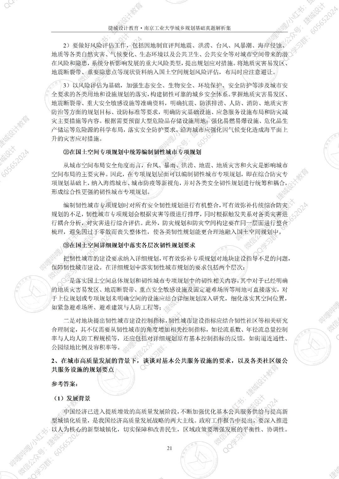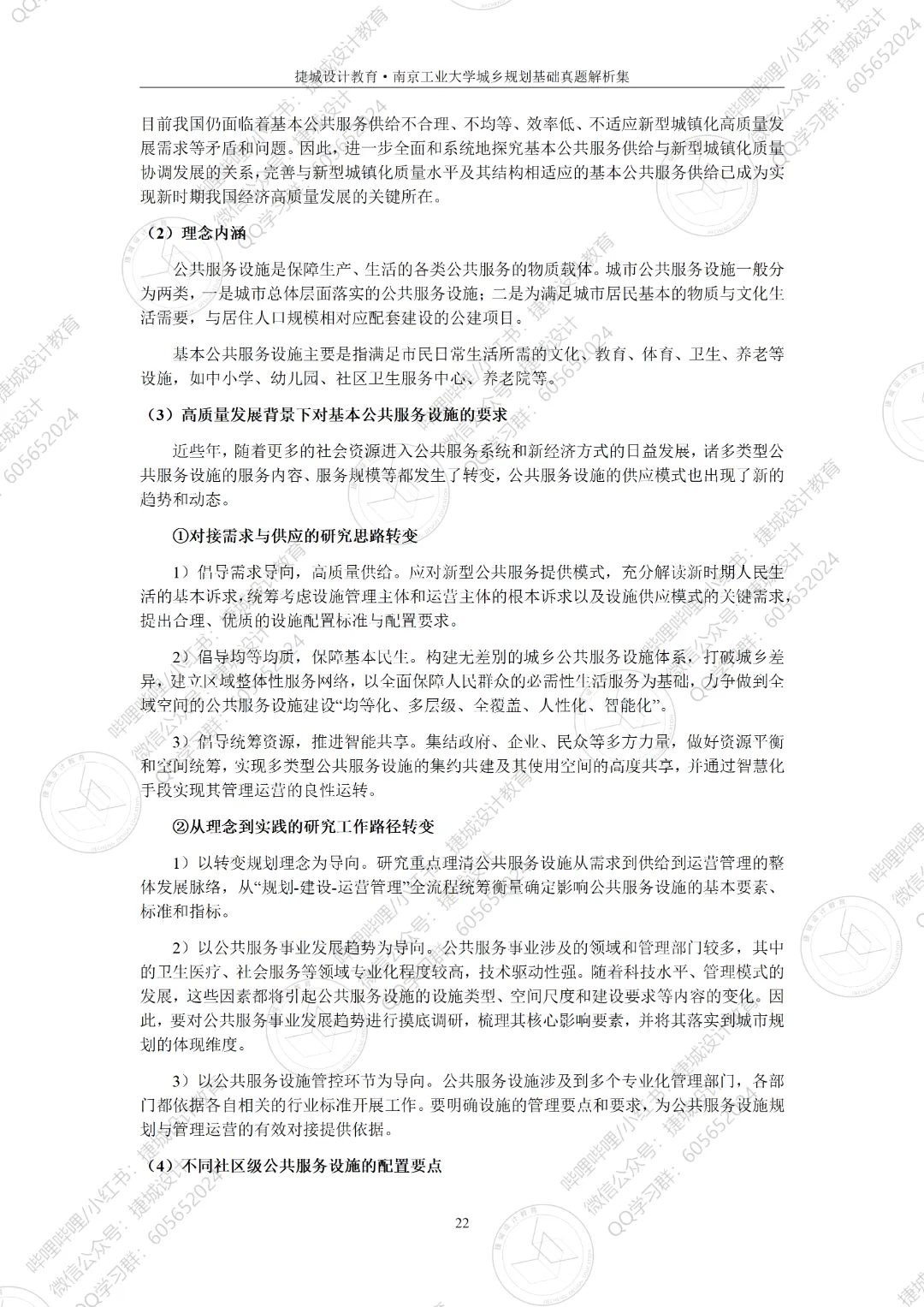 第二、热点知识部分。主要聚焦于当前城乡规划领域的前沿议题,呈现出基础理论与行业热点深度融合的命题趋势。该部分通常以论述题形式出现,具有综合性强、开放度高的特点。如2026年—试论述城市更新的概念、基本原则及主要任务、2025年—论述社区生活圈的内涵、规划原则及规划要点、2024年—在城市高质量发展的背景下,谈谈对基本公共服务设施的要求,以及各类社区级公共服务设施的规划要点、2023年—国土空间规划如何助力实现“双碳”战略目标等。因此,建议考生采取系统化的备考策略:首先,要全面掌握城市规划原理的核心知识点,深入理解基础理论与热点议题的内在联系;其次,建立专题化的知识体系,通过阅读《城市规划》、《城市规划学刊》等核心期刊论文、关注最新城市规划年会主题词及优秀微信公众号推文,把握学科前沿动态、积累高质热点答题素材,构建包含政策解读、典型案例和实施路径的多维度知识库,以应对跨学科、多角度的综合考察要求;最后,注重培养综合思维能力,在系统梳理知识脉络的基础上融入独立思考,通过案例积累及热点专题答题训练提升论述题作答能力。