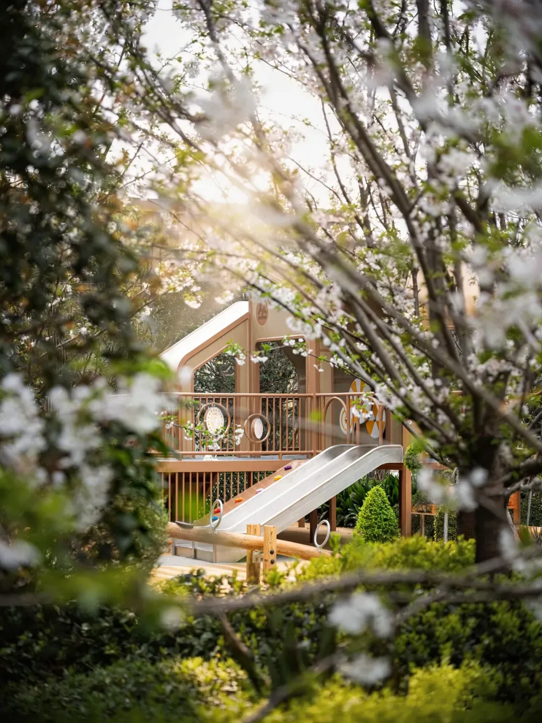 儿童活动区的设施,全部做了圆角处理,外露的管线也做了防护,连高低落差除,都做了安全警示,把所有可能的隐患,都提前堵死了。
