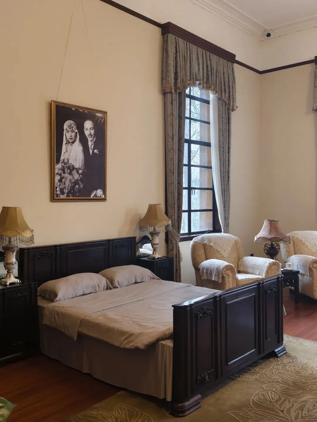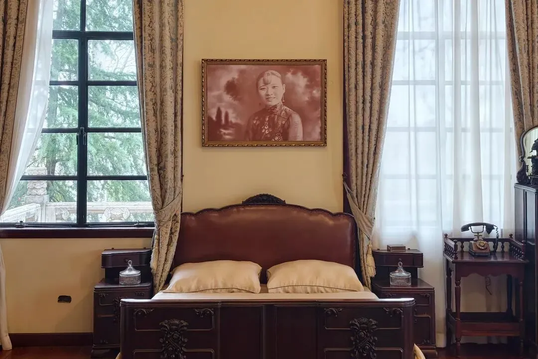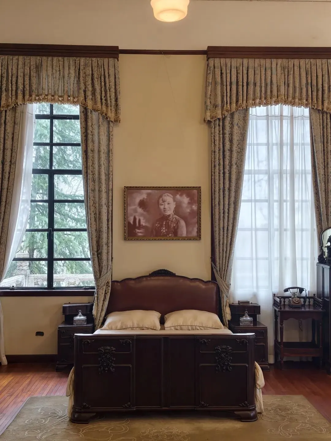 三楼是卧室和书房。两人分房睡的,主卧是宋美龄的,雅致、格调。