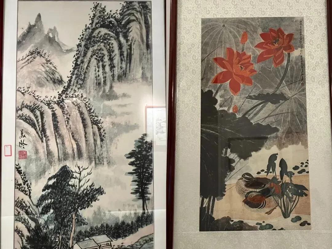 水晶灯边上搭配国画。从内到外,主打一个中西合璧。