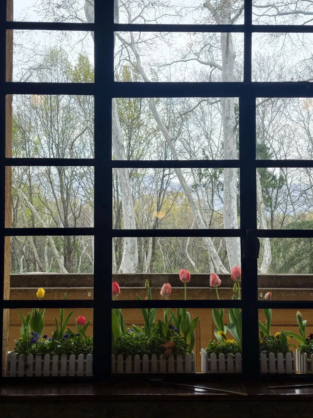 可惜天色傍晚了,如果有阳光,映射到窗台上一定很美。