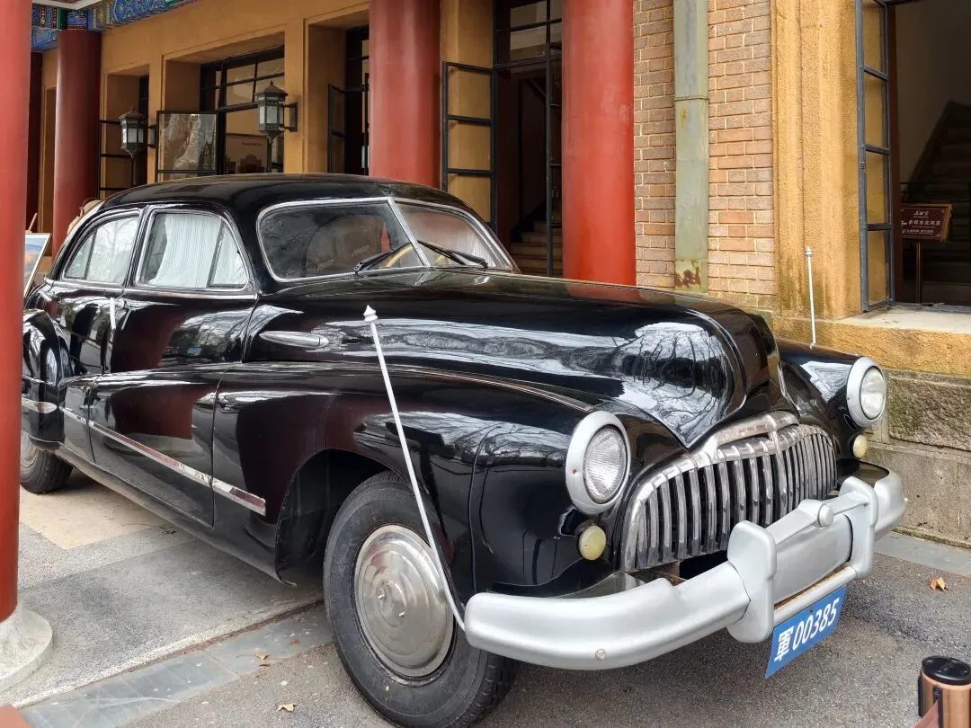 门口停的黑色别克汽车,当年罗斯福送给宋美龄的,保养的锃亮,好多人在那而合影。