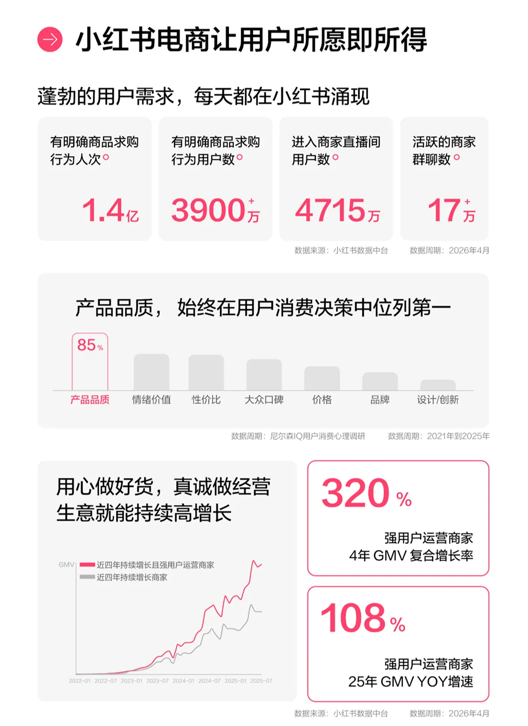在电商行业普遍陷入流量焦虑与低价内卷的当下,小红书走出了一条差异化发展路径:不做流量生意,做人群生意;不卷价格,卷品质。