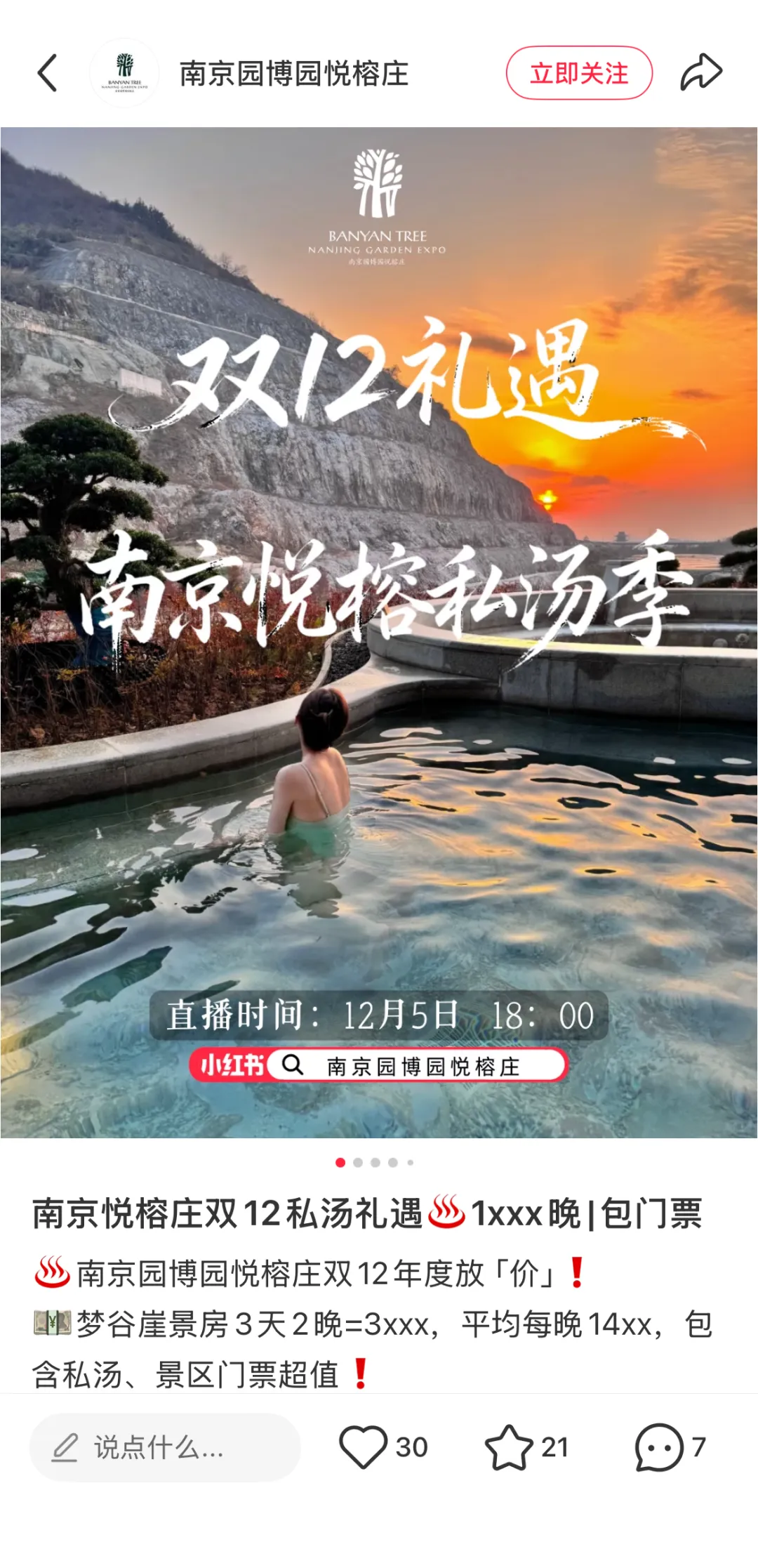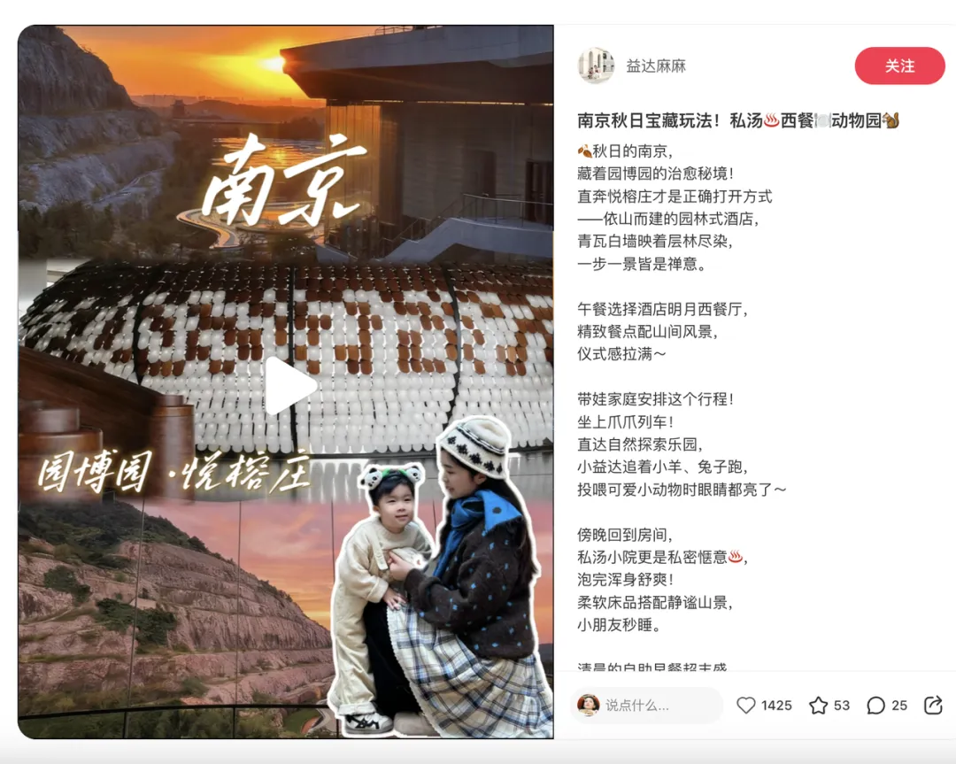 Q:请问南京园博园悦榕庄此前布局小红书渠道的考量是什么?开拓初期,对小红书赛道的期待与定位是怎样的?