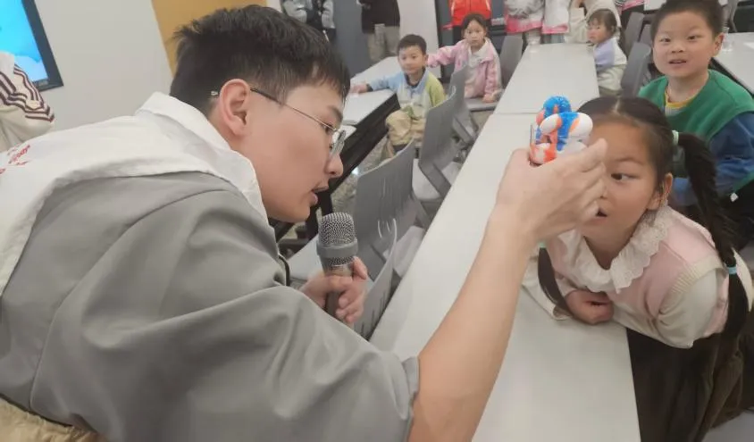 在“小小气象探险家”科普课堂,南京信息工程大学长望学院带来趣味气象科普。志愿者以生动通俗的语言讲解气象常识与AI天气预报相关知识,通过“造云下雨”科学实验、自制风向标动手实践、互动问答等环节,让青少年直观感受气象奥秘,在实践中激发科学探索兴趣。