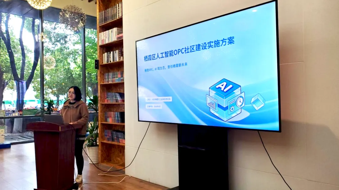 分享篇环节,栖霞区工信局相关科室负责人深入解读栖霞区OPC建设实施方案。依托仙林大学城等高校资源集聚优势,栖霞正着力构建 “科教 + 产业” 双轮驱动的人工智能创新工场,打造“就近孵化、就地转化、持续成长”的 OPC 特色社区,为创业者提供全周期发展支撑。