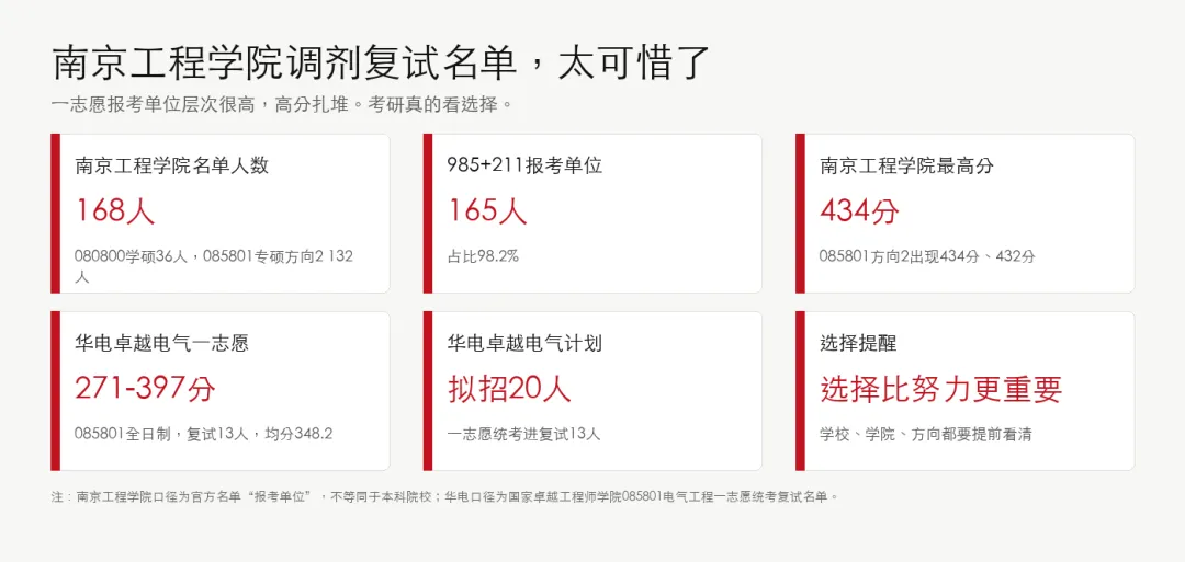 也就是说,南京工程学院这份调剂复试名单,几乎全是从985、211、电力强校的一志愿池子里来的。
