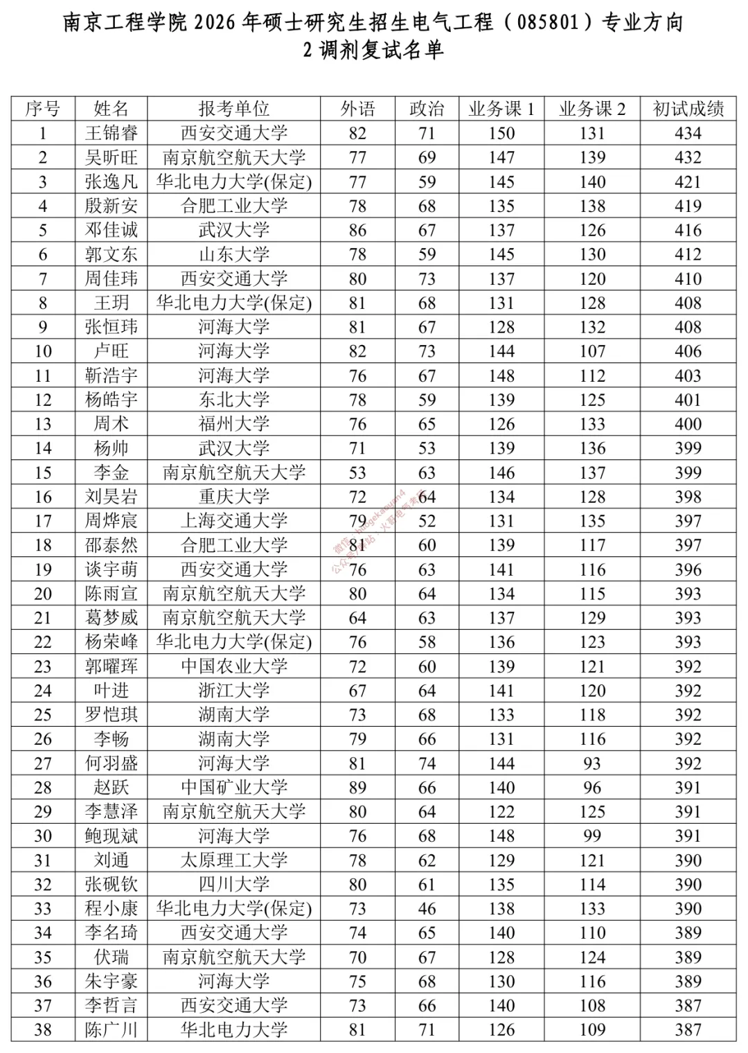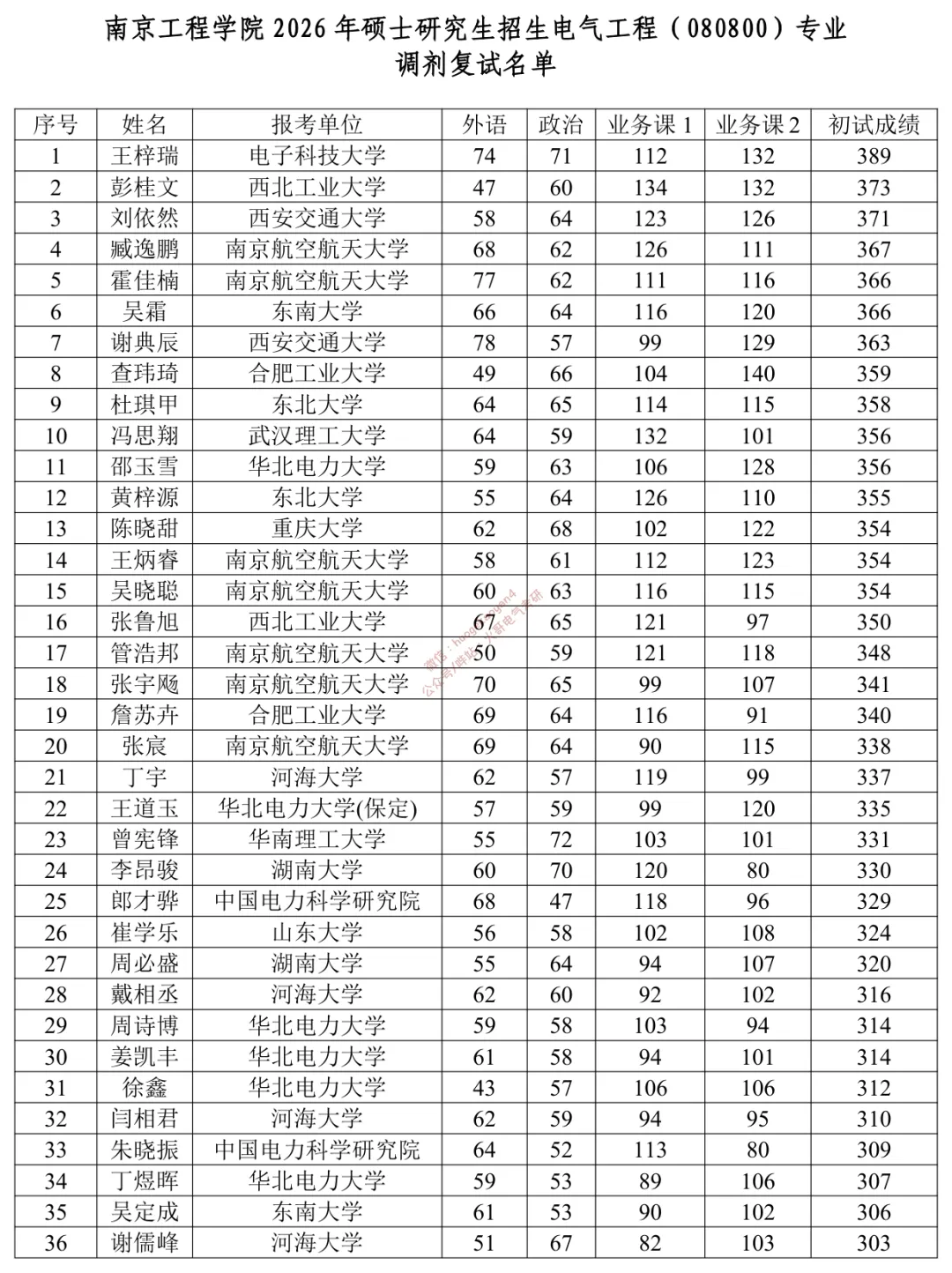 今天这篇文章,小编想聊一份非常有冲击力的名单:南京工程学院2026年硕士研究生招生电气工程专业调剂复试名单。
