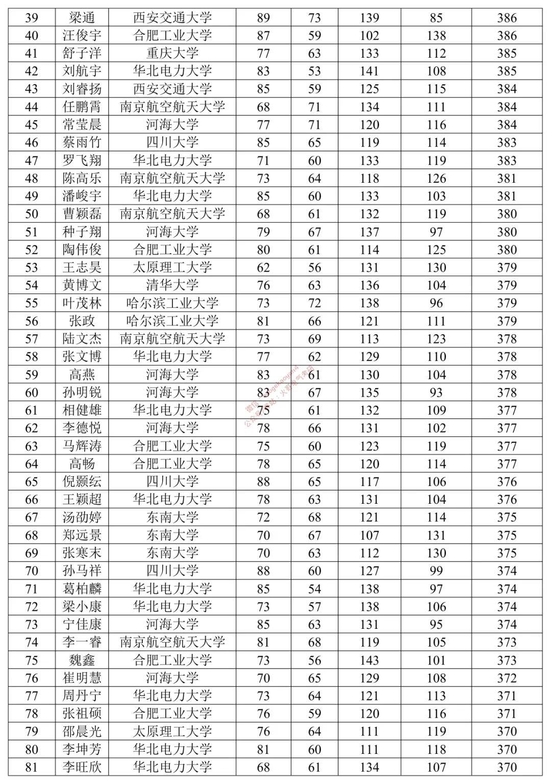 080800 电气工程(学硕)调剂复试名单:36人。
