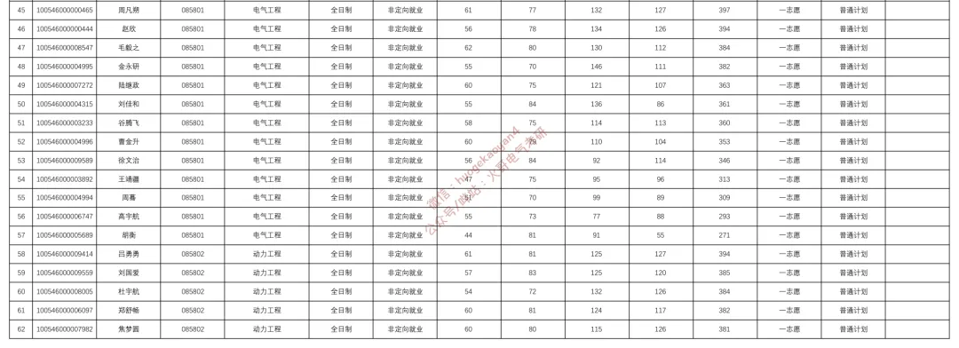 这份名单里,085801电气工程全日制一志愿统考进入复试13人。