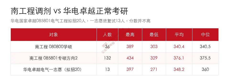 小编把南工程调剂数据和华电国家卓越正常考研数据放在一起:
