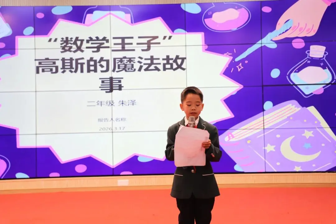 一、二年级开展数学家故事演讲比赛,小选手们声情并茂地讲述数学先贤的探索历程与励志故事。活动不仅充分锻炼了学生的语言表达、逻辑组织与舞台展示能力,更让孩子们在讲述中走近数学、理解数学,感受数学文化的深厚底蕴,在潜移默化中培养对数学学科的热爱与探索精神。