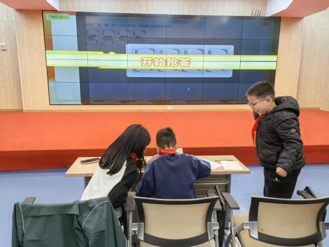 三年级举行24点团体竞技比赛,各班组建三人代表队参与班级间比拼。必答环节中选手沉着应答,抢答环节紧张激烈,互动环节带动全场氛围。此次活动以趣味竞技为载体,有效提升了学生的快速运算能力与协作意识,让数学运算在比拼中更具趣味性与挑战性。