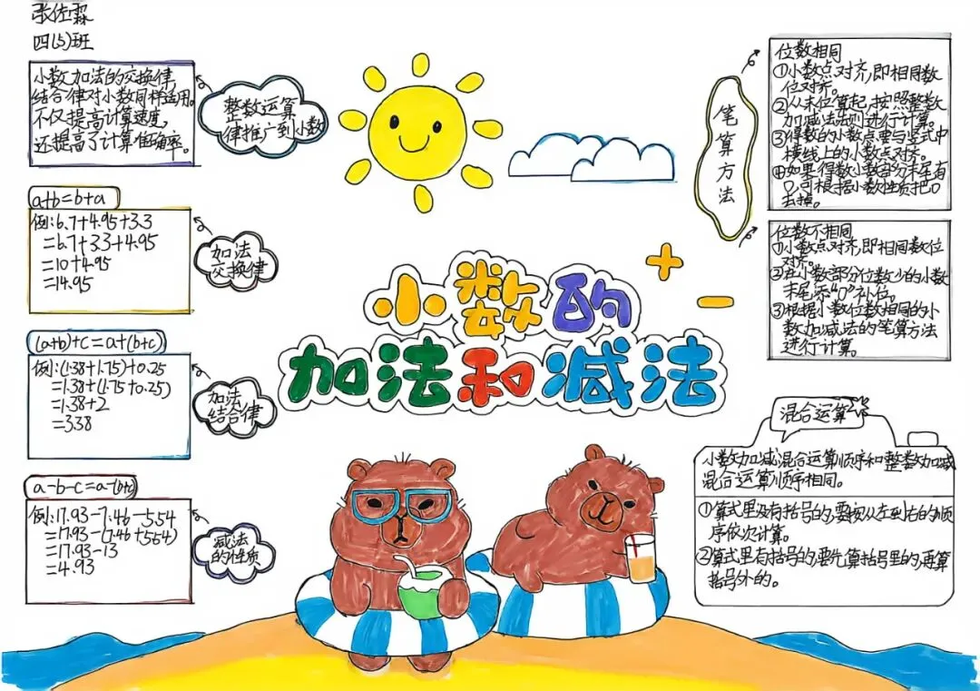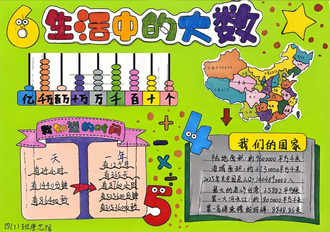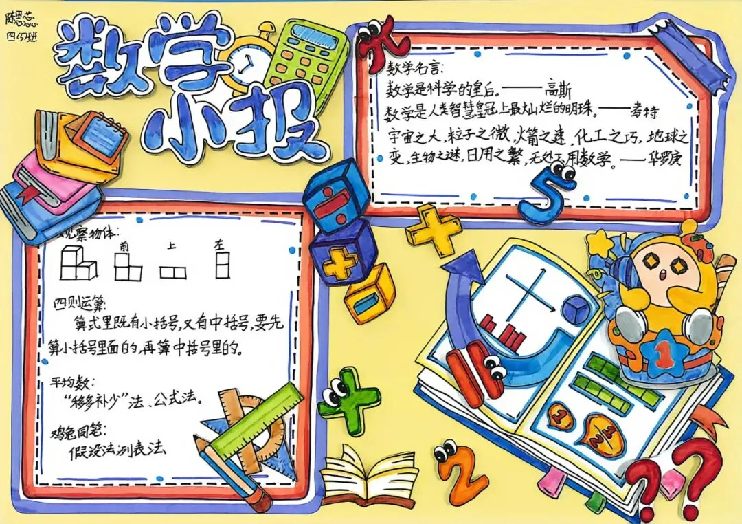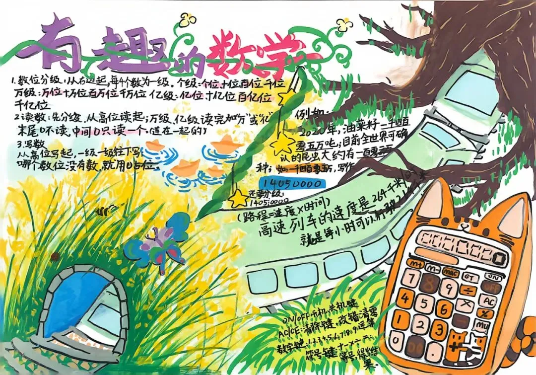 四年级开展数学小报、思维导图创作活动。同学们将数学知识梳理、逻辑框架搭建与创意美术设计融为一体,版面布局美观、知识脉络清晰。活动有效锻炼了学生的知识归纳、逻辑整合与创意表达能力,让抽象的数学知识变得直观系统,进一步丰富了数学学习的形式与内涵。