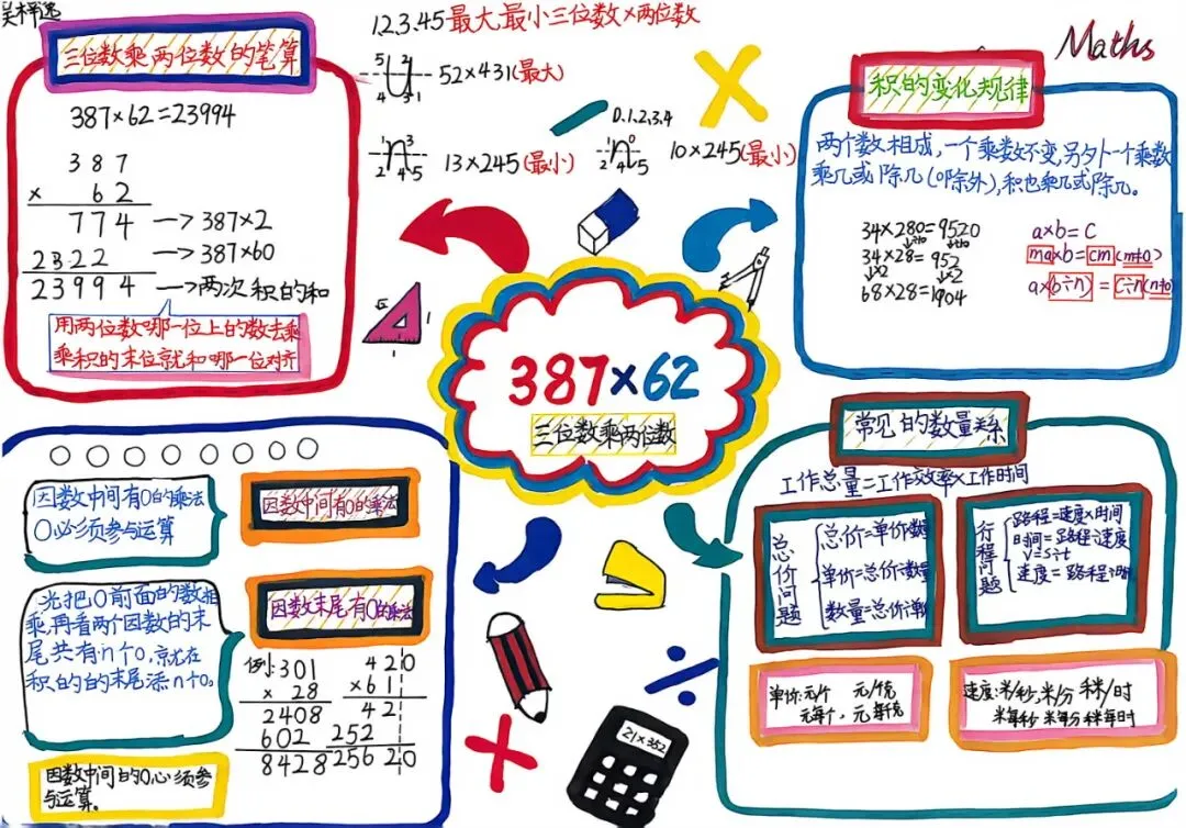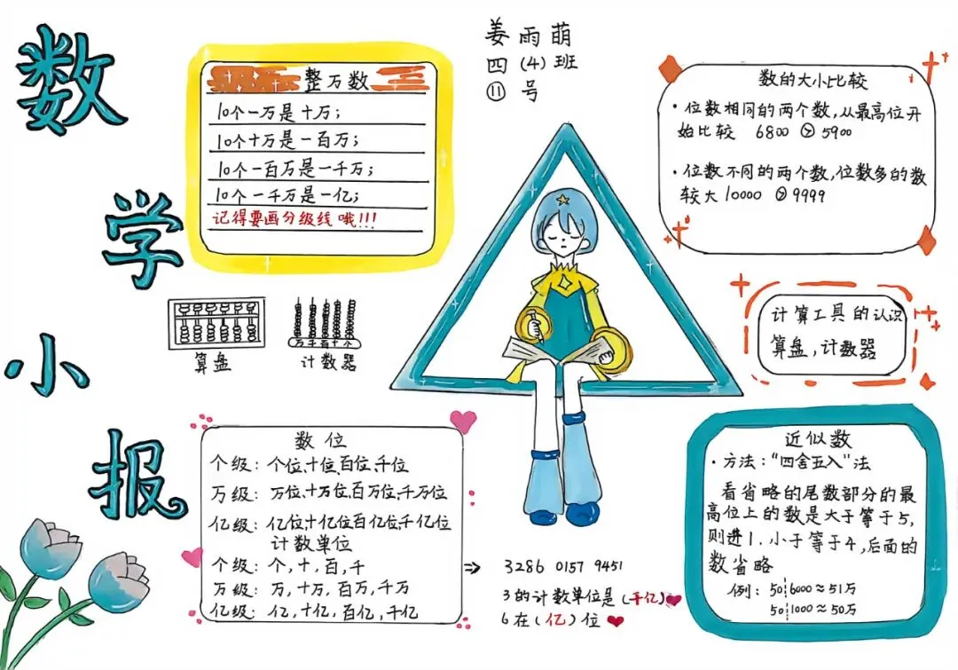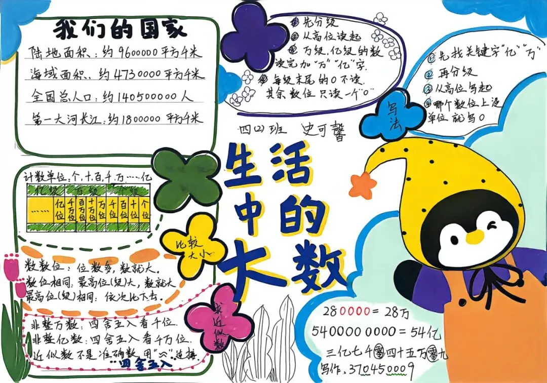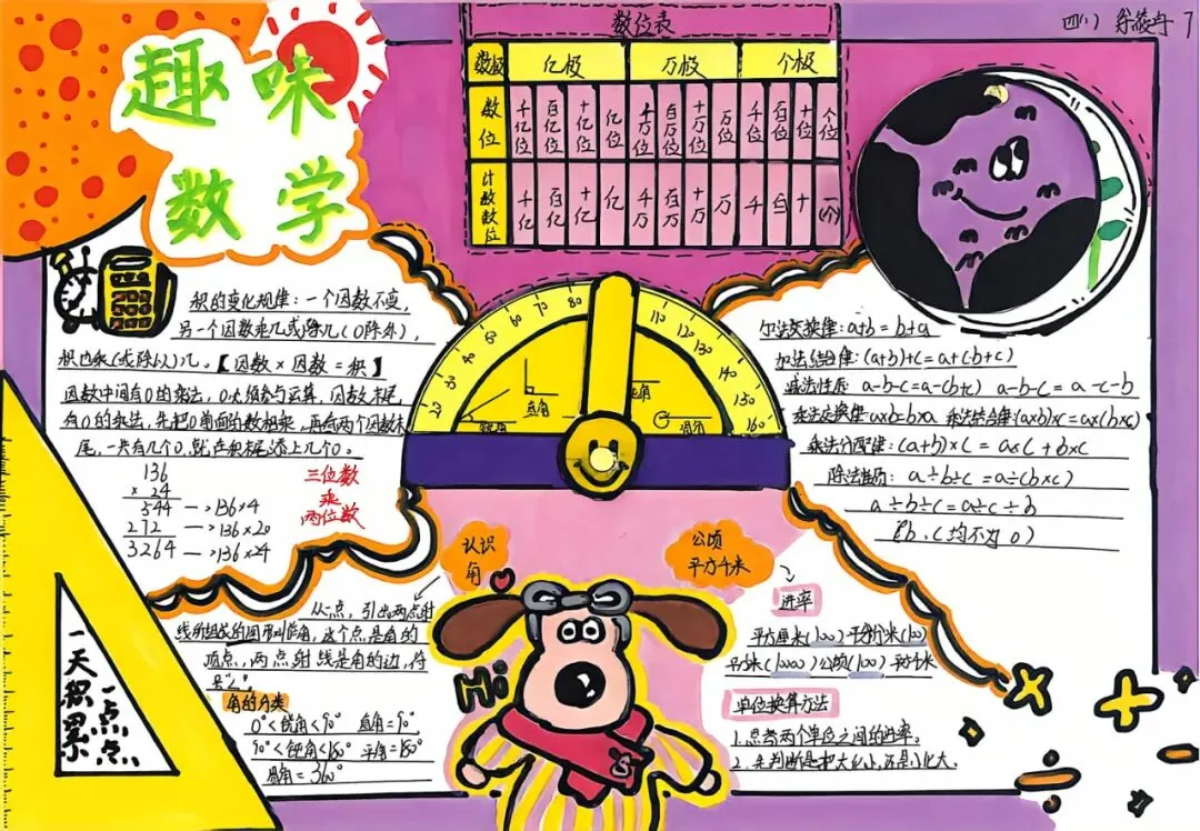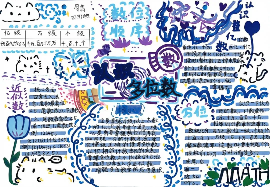 四年级开展数学小报、思维导图创作活动。同学们将数学知识梳理、逻辑框架搭建与创意美术设计融为一体,版面布局美观、知识脉络清晰。活动有效锻炼了学生的知识归纳、逻辑整合与创意表达能力,让抽象的数学知识变得直观系统,进一步丰富了数学学习的形式与内涵。