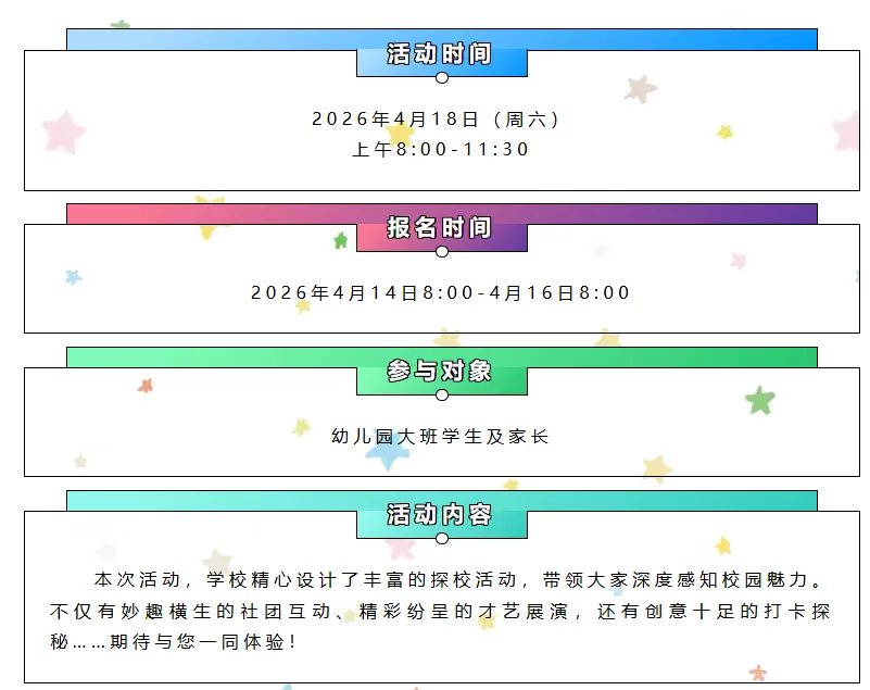 本次小学部嘉年华活动系学校的常规性校园开放活动,旨在集中展示小学部校园生活、办学特色及师生精神风貌。活动全程不涉及任何招生相关事宜,是否参与活动与招生录取无任何关联。衷心感谢家长对我校工作的理解、支持与配合。学校将严格按照上级主管部门要求,进一步规范各类校园活动流程,持续做好校园办学成果展示与沟通交流工作,努力为各位家长及社会各界提供更优质的服务。