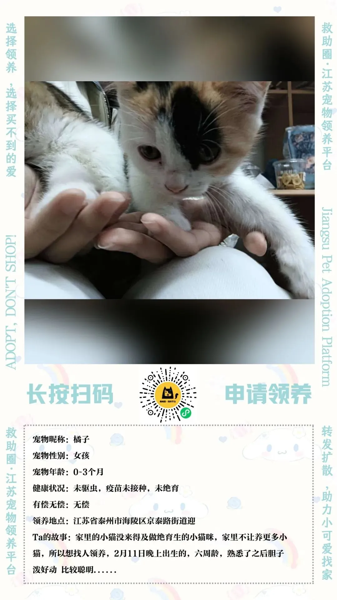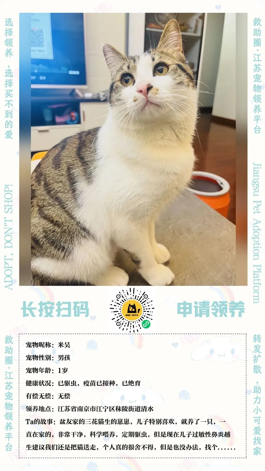 当前位置:首页>南京>2026年04月14日宿迁、泰州、南京、常州、苏州、南通宠物领养(8只猫猫、1只狗狗)