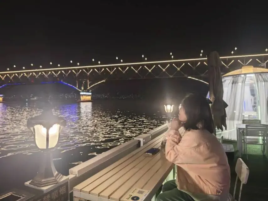 我静静坐着,再次凝望雄伟的南京长江大桥。脚下是奔流不息的江水,身旁是温柔的江风,眼前是民族脊梁般的大桥,那一刻,世间所有美好仿佛都汇聚于此。平日里奔波劳碌,难得有这般松弛自在的时刻,只觉神仙日子也不过如此。置身于这江上美景之中,眼前的浪漫与惬意,用“恋恋不舍”都不足以形容这份眷恋,只想多停留片刻,多感受一分大桥与江夜的壮美。
