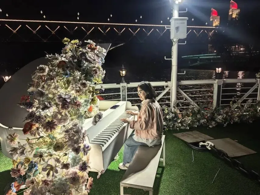 夜色温柔,南京的晚风轻轻拂面,没有燥热与寒意,温度恰到好处,舒适得让人沉醉。江风带着湿润的水汽扑面而来,空气清新沁脾。坐在船屋的高椅上,眼前便是滚滚东流的长江水,江面波光粼粼,灯光随波浪摇曳生姿。往来的游船在江面上穿梭,鸣笛声悠远绵长,与江水流动的声响交织在一起。船屋内播放着舒缓轻柔的音乐,旋律与江风相融,氛围感拉满。