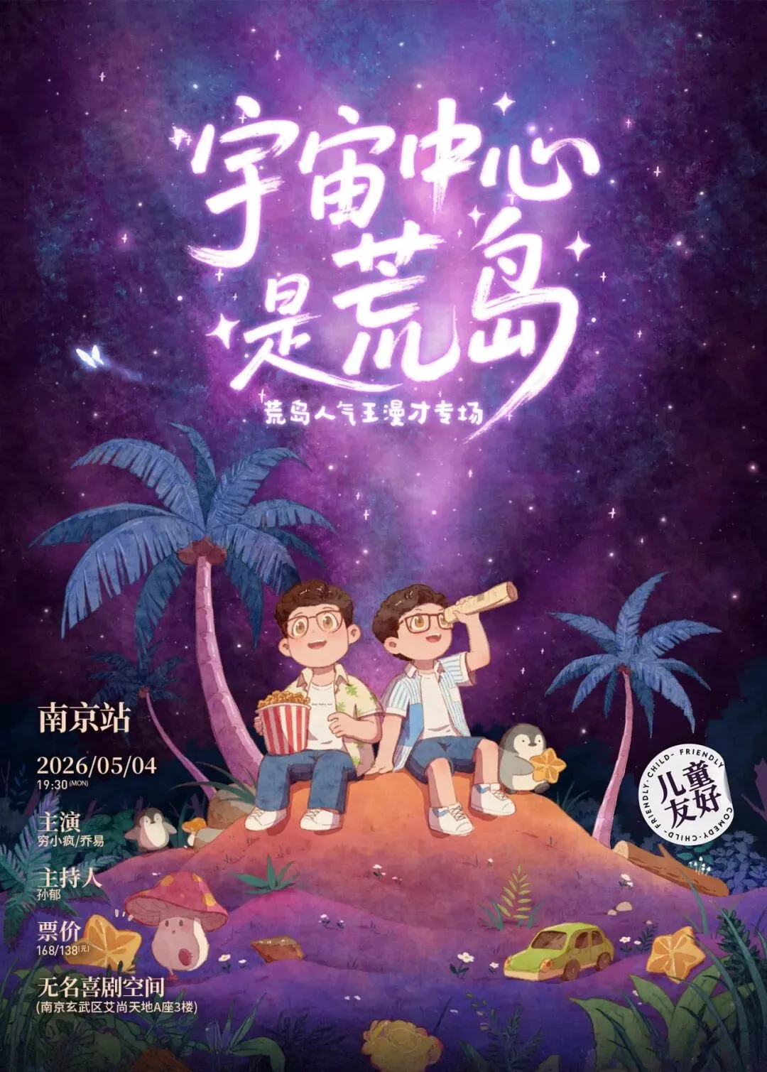 当“宇宙中心”秒变“荒岛”,穷小疯和乔易的漫才魔法就生效了!敢玩敢造,爆笑不重样,更欢迎6岁以上的小朋友和妈妈爸爸一起来看!荒岛专场,对小学生来说太幼稚,但对成年人来说刚刚好。