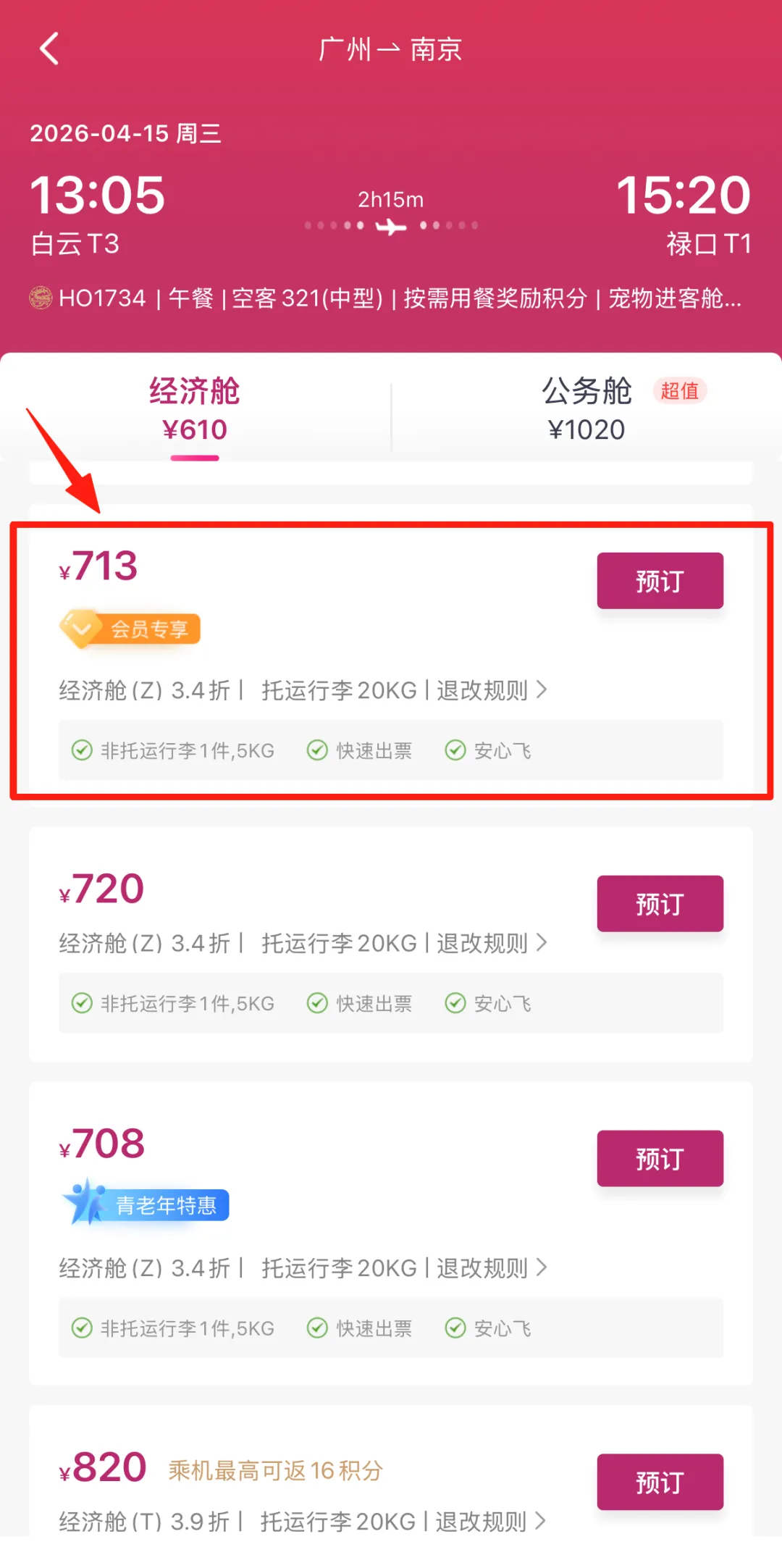 有机会享受经济舱票价