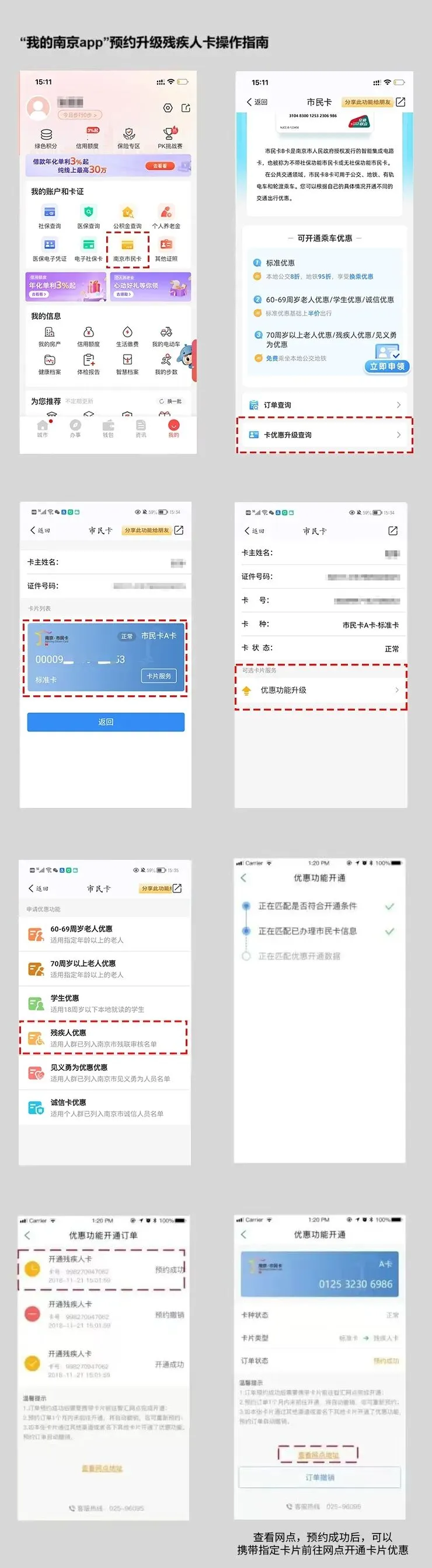 无市民卡用户可在“我的南京”APP接申请一张残疾人优惠卡,邮寄到家;