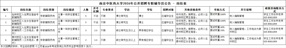 2026江苏南京中医药大学招聘专职辅导员15人公告