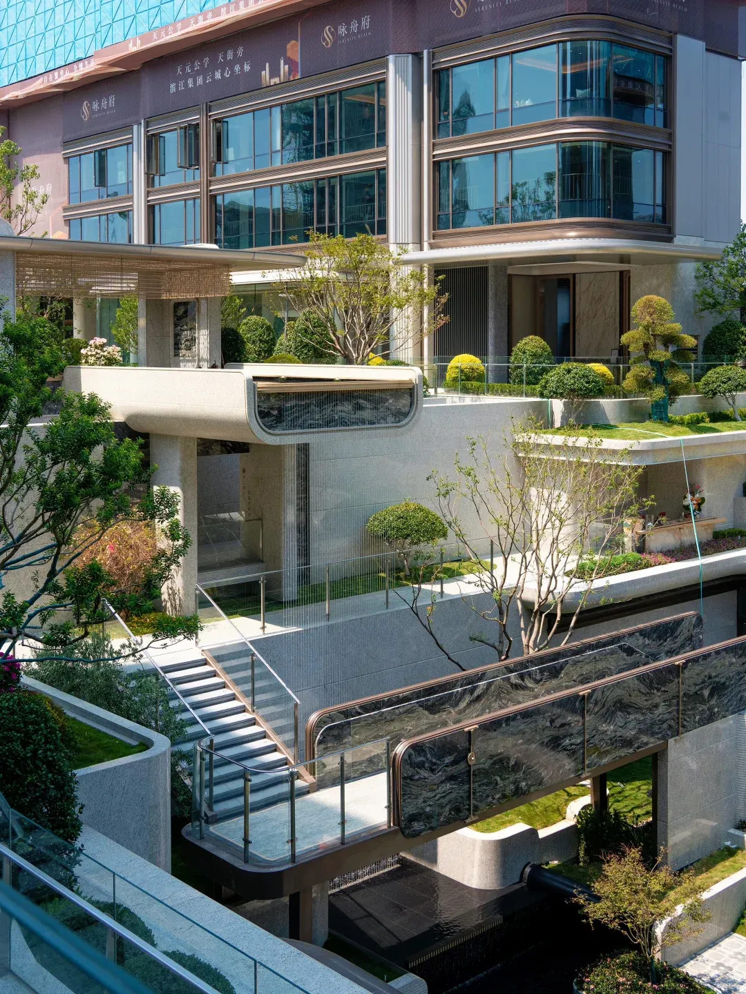 苏州首个抬板社区“湖西源启”整体抬升约5.1米,杭州滨江·咏舟府则以“漂浮花园”为主题,打造空中立体园林。