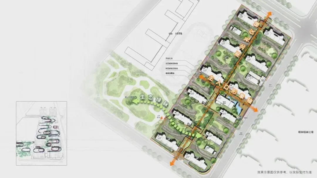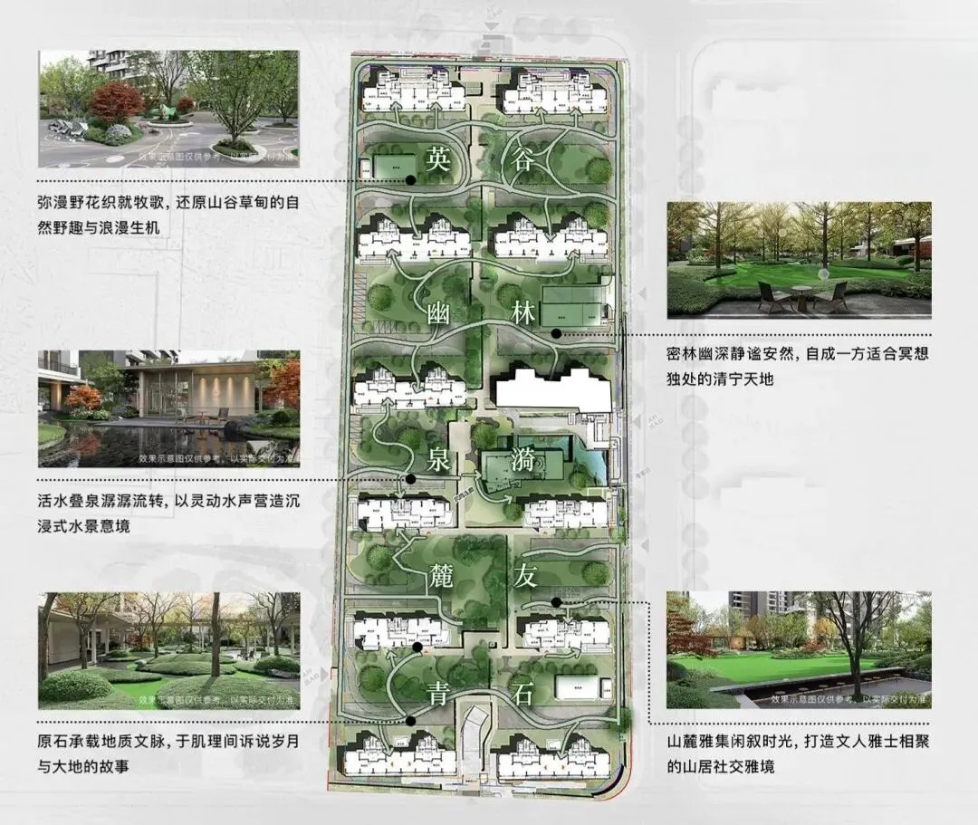 以中央绿轴串联所有楼栋,依次延拓5大主题宅间花园。