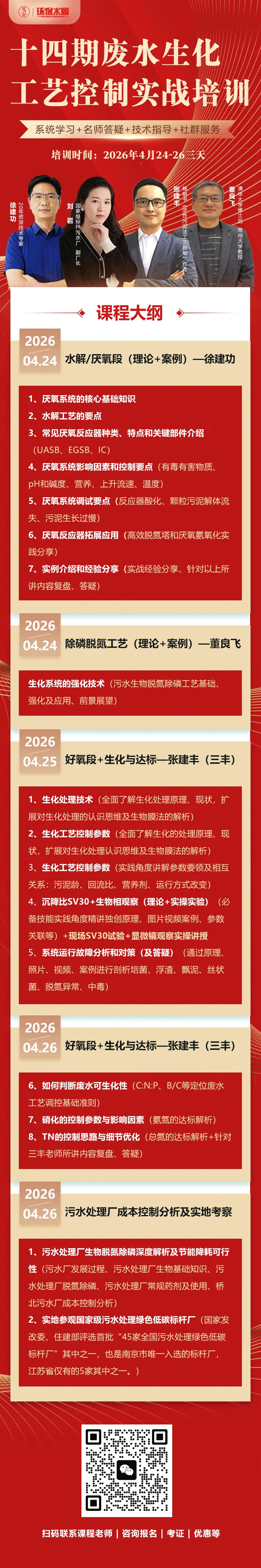 我们希望通过这个从实战角度设计、落地形式丰富的生化工艺课题培训班,给环企、污水厂和工业企业带去实打实的技术启发和实操参考。