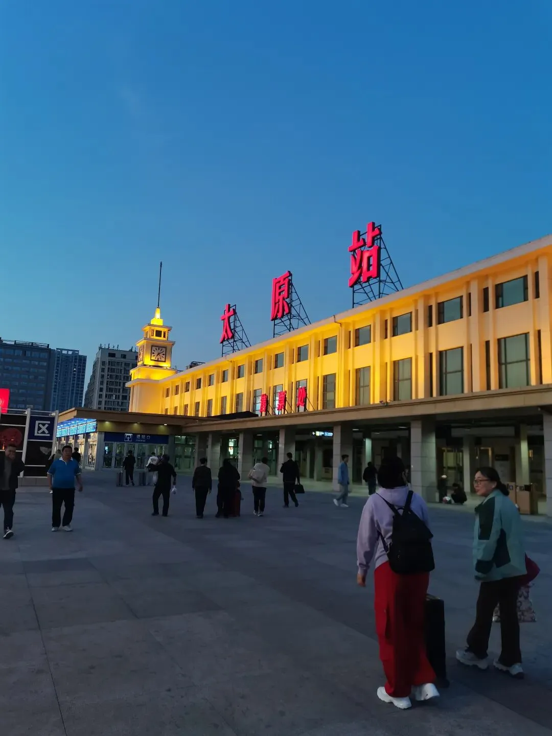 多年没有来太原站了,暮色降临,明亮的灯光亮成一片,暖色调的太原站宫殿般庄重耀眼。