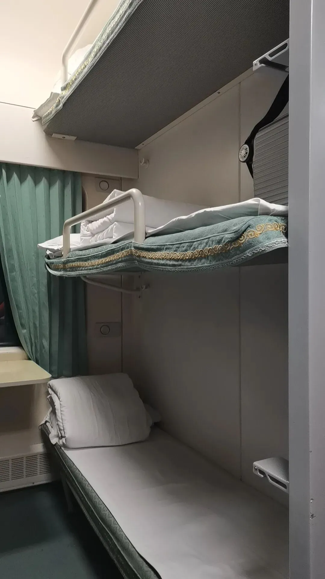 窄窄的卧铺车厢非常憋闷,上铺的咳嗽声,鼾声此起彼伏,咣当咣当的碰撞声交织成一幅特殊的烟火气,得好长时间才能适应。