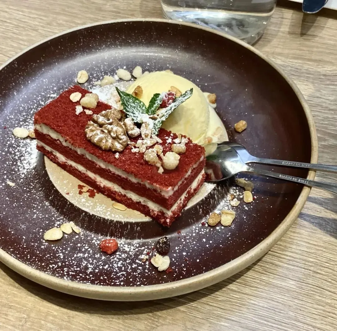 红丝绒冰淇淋:一般是餐后甜点,通常是香草或芝士蛋糕口味的冰淇淋,保证奶香浓郁。它不仅仅是把冰淇淋染成红色那么简单,而是完美复刻了经典红丝绒蛋糕的风味。