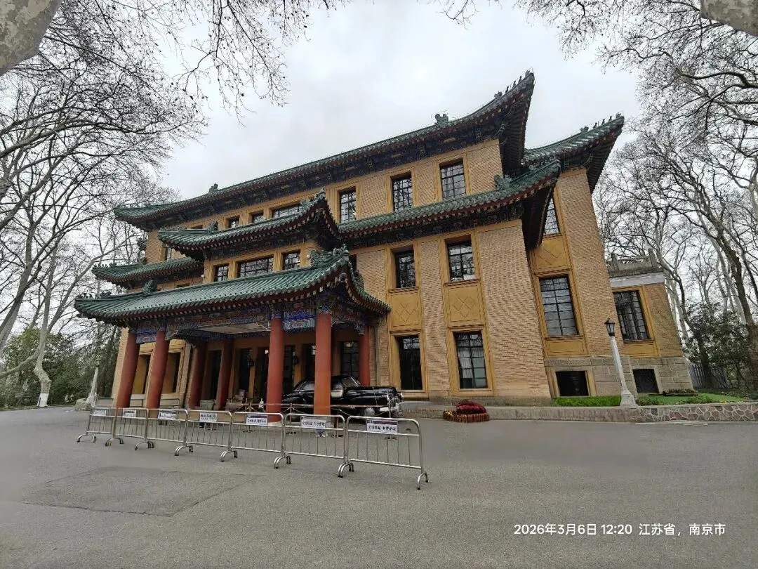 自中山陵拾级而下,搭乘景区交通车,便抵达了藏于钟山万绿丛中的美龄宫。这座被誉为远东第一别墅的宫殿式建筑,既是蒋介石与宋美龄的昔日寓所,更是民国建筑史上“穿西装、戴瓜帽”的经典范本,凭藉独树一帜的中西合璧风骨与浪漫天成的“梧桐项链”景观,成为南京城最动人的地标之一。