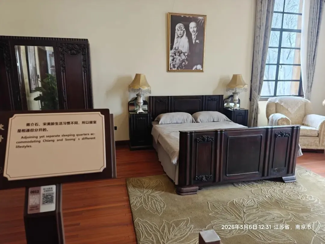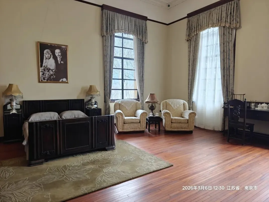 底层设接待室、秘书办公室等公务空间;二楼西侧为会客室、起居室,东侧分设蒋介石与宋美龄的独立卧室——二人因生活习惯迥异,卧室各自独立,且宋美龄的居所更为宽敞;三楼则有女客厅、大卧室、小餐厅,以及专供做礼拜的凯歌堂。