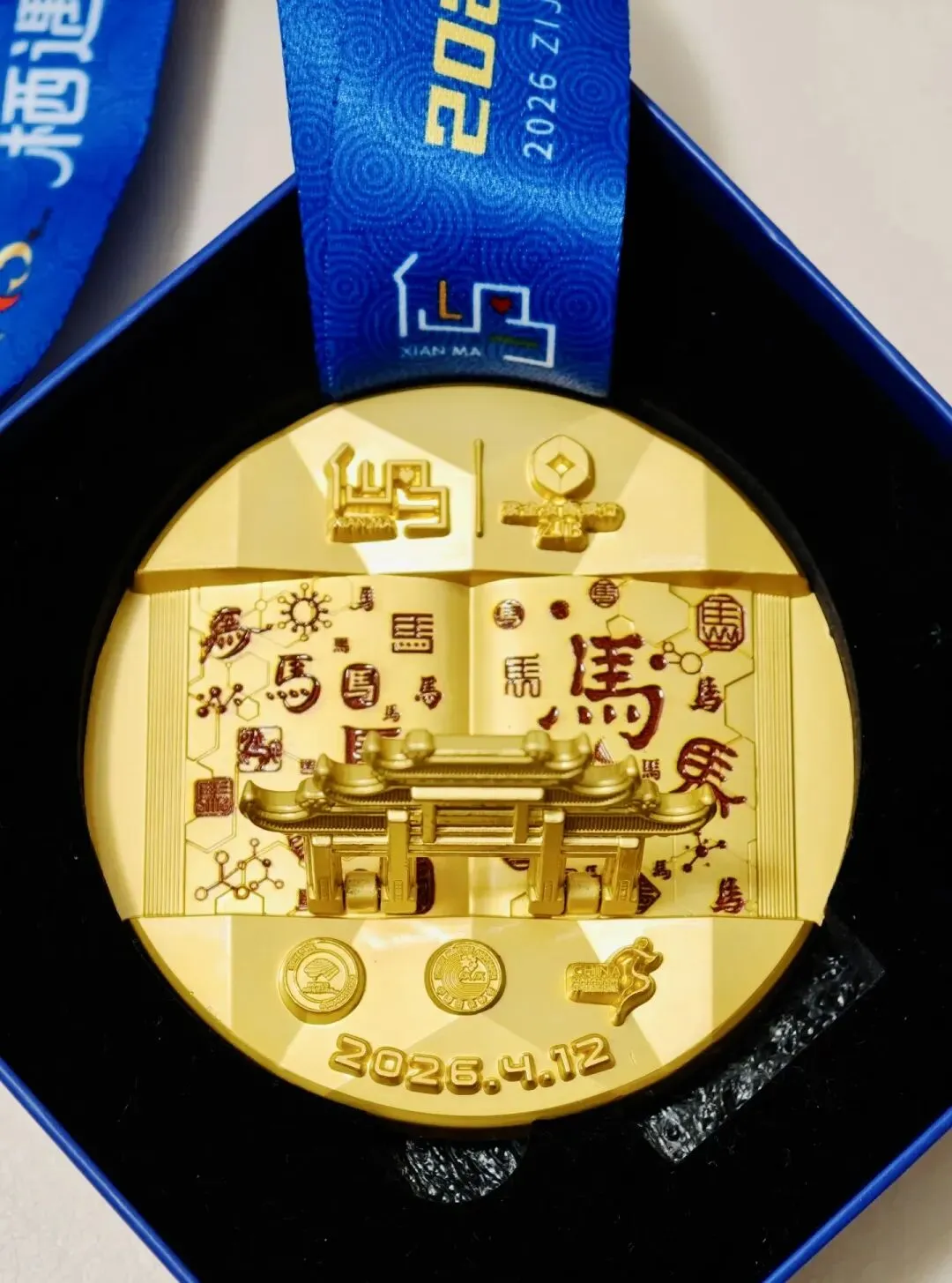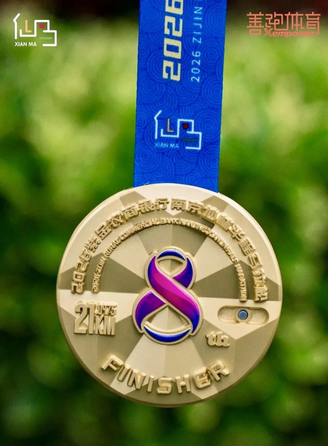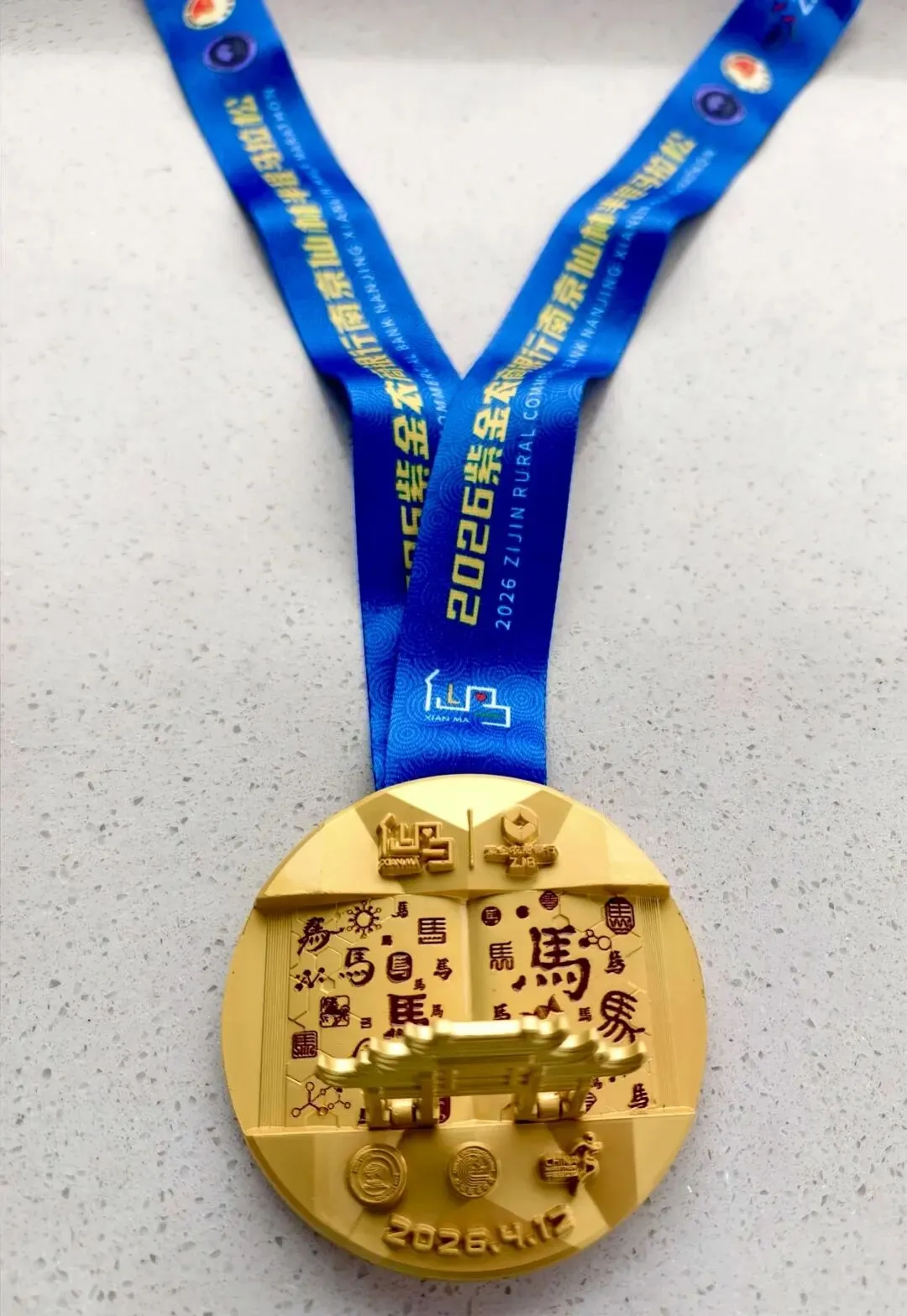 奖牌是以书本为形,致敬求知精神,书页浮雕融合栖霞山水意象,与仙马的高校人文交相辉映。