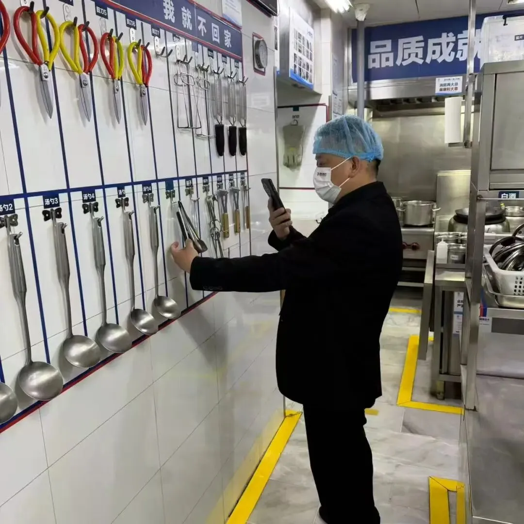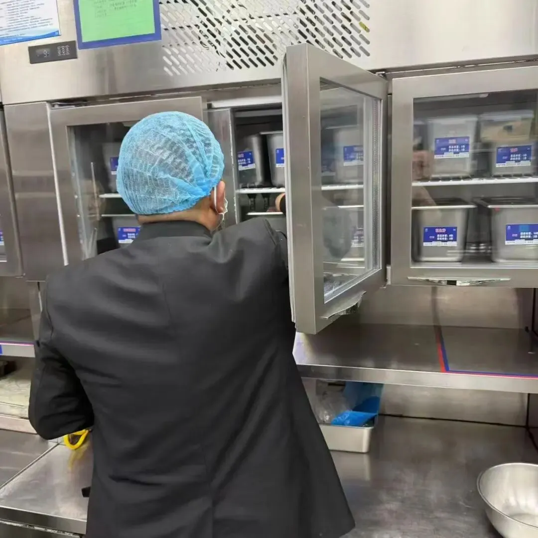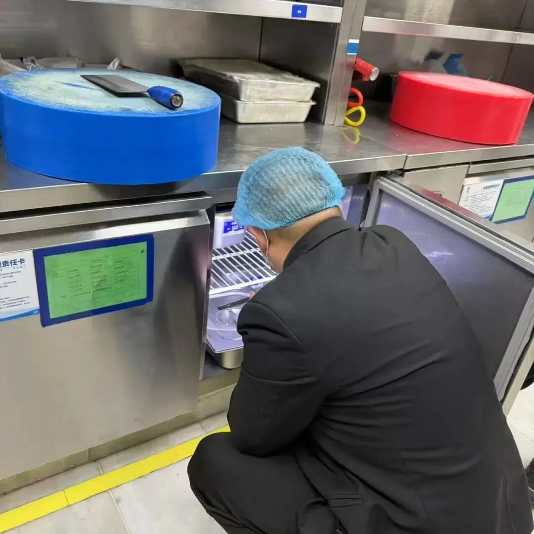 走进后厨,刀具案板色标分明,工具上墙悬挂整齐,冰箱里的半成品件件加盖覆膜、标签朝外。随手打开台账,从晨检记录到消毒记录,从进货查验到出品测温,一天不落,字迹工整。