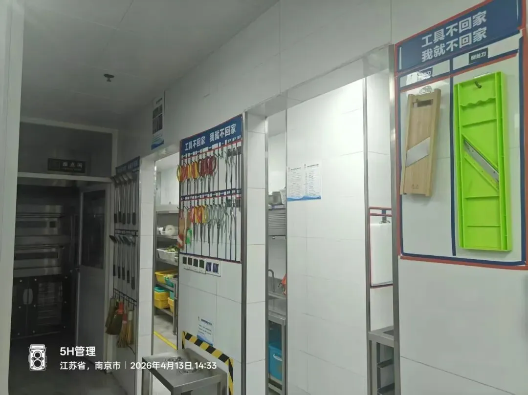 芳村土菜研究所的风格更接地气,但标准不打折。明档里,食材新鲜摆列,小料台干净无残渣;库房里,米面粮油离墙离地,先进先出标识清晰。就连员工休息室,也整洁得像军训过的宿舍。