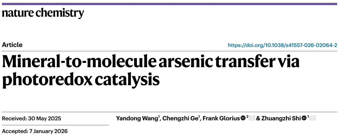 南京大学史壮志《Nat. Chem.》光氧化还原催化矿物到分子:安全绿色制备有机砷