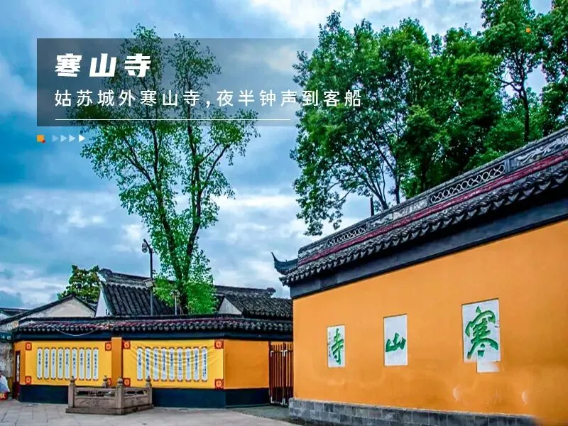 寒山寺始建于南朝,已有一千四百余年历史,属于禅宗中的临济宗。因唐代诗人张继的名诗《枫桥夜泊》中“姑苏城外寒山寺、夜半钟声到客船”一句而闻名天下。古迹甚多,有张继诗的石刻碑文,寒山、拾得的石刻像,文徵明、唐寅所书碑文残片等。