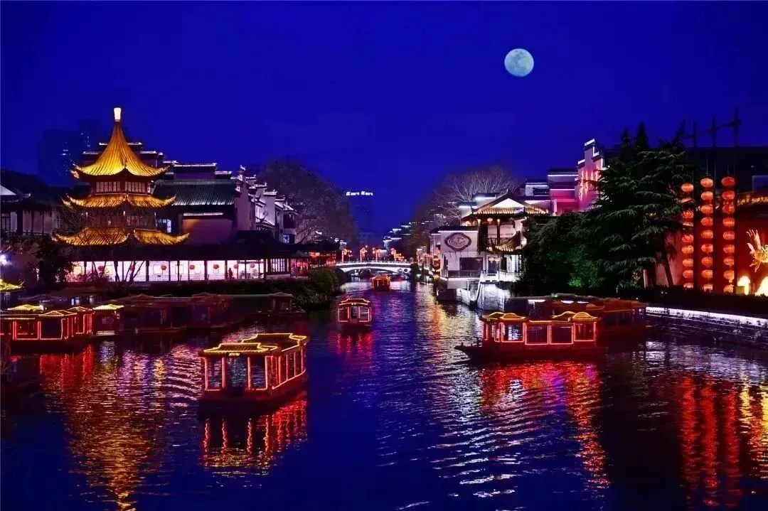 秦淮河画舫,这是最经典的夜游秦淮河航线,自泮池码头出发,途经白鹭洲、七彩水街、东水关、复成桥……