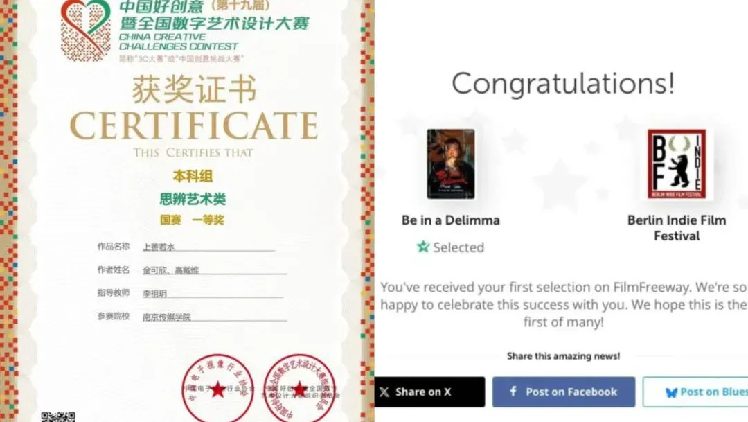 获奖九件次!在第19届中国好创意大赛-首届“河马杯”大学生微短剧专项大赛中,南传国际的学子们取得了优秀成绩获奖九件次,充分展示了学院在数字艺术及网络视听领域新兴热门业态的优秀教学成果。