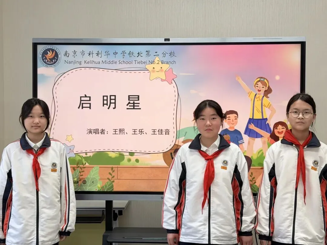 青春有梦,不惧远方。初二22班的王熙、王乐、王佳音三位同学带来歌曲《启明星》,温暖治愈、充满力量的歌声,像一束光指引方向,诠释着“心中有光、脚下有路”的少年模样。