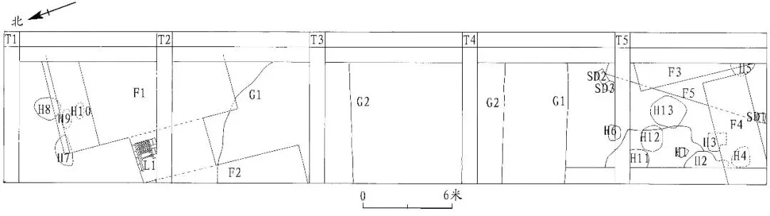 ③层:灰黄色土,土质松软,包含青瓷,青白瓷、砖瓦及陶器碎片等。厚 0.1~1.5 米。为宋元时期 地 层 。G1、H1—H13、F5 等 遗 迹 被 叠 压 于 该层下。