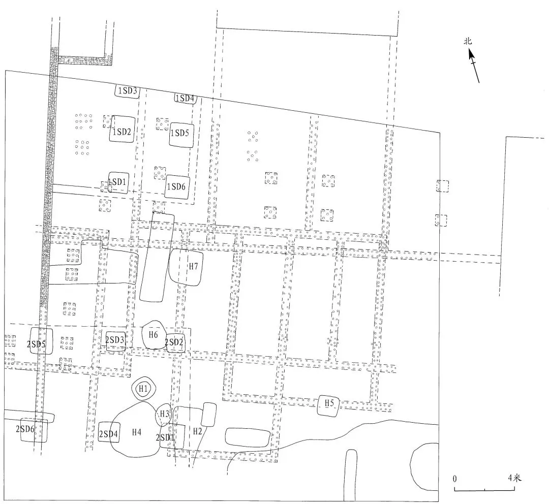 此外,在 G1、G2 的南北两侧还清理出宋代至明清时期的灰沟、灰坑、房址、道路等遗迹,其中宋代的遗迹含灰坑 13 座,房址 1 处;明清时期的遗迹有房址 4 处,道路1条。简介如下。