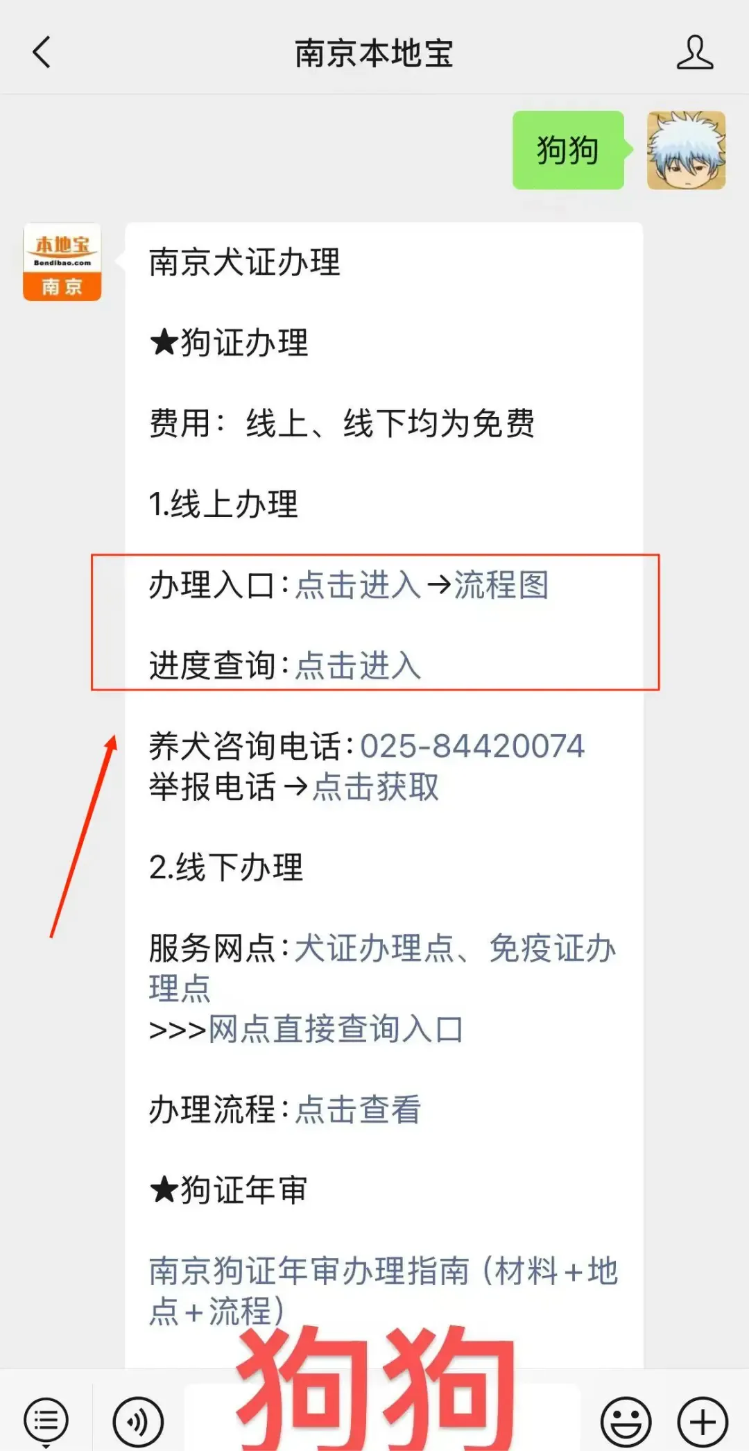 快捷办理入口:扫描下方二维码,关注南京本地宝,后台对话框回复【狗狗】即可南京狗证线上办理入口、办理流程、办理材料、办理进度查询等;