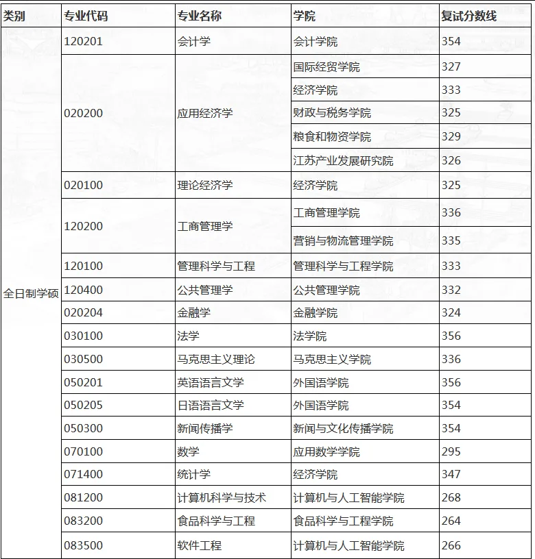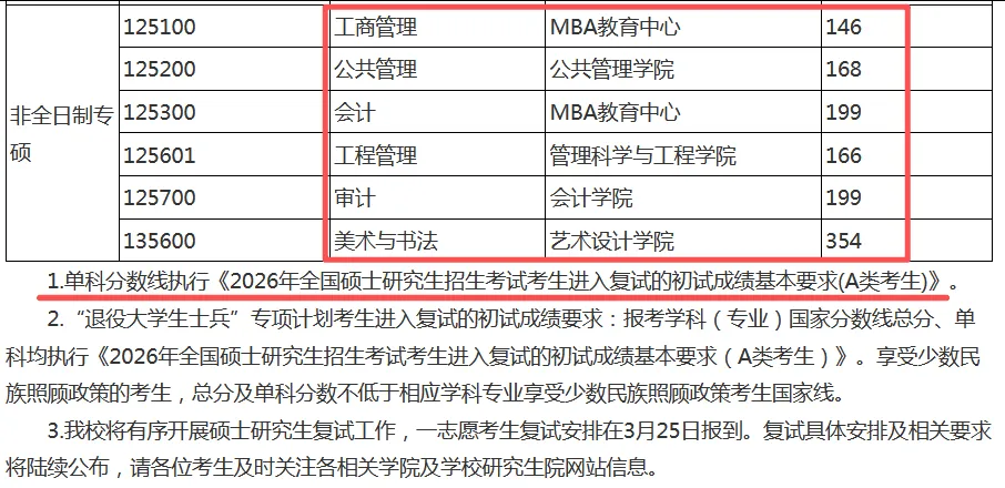 南京财经大学2026年硕士研究生复试线已经公布了!今年南财所有在招的非全日制研究生复试线均为A线。