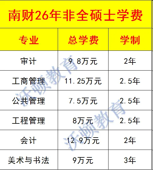 南财26年非全硕士学费
